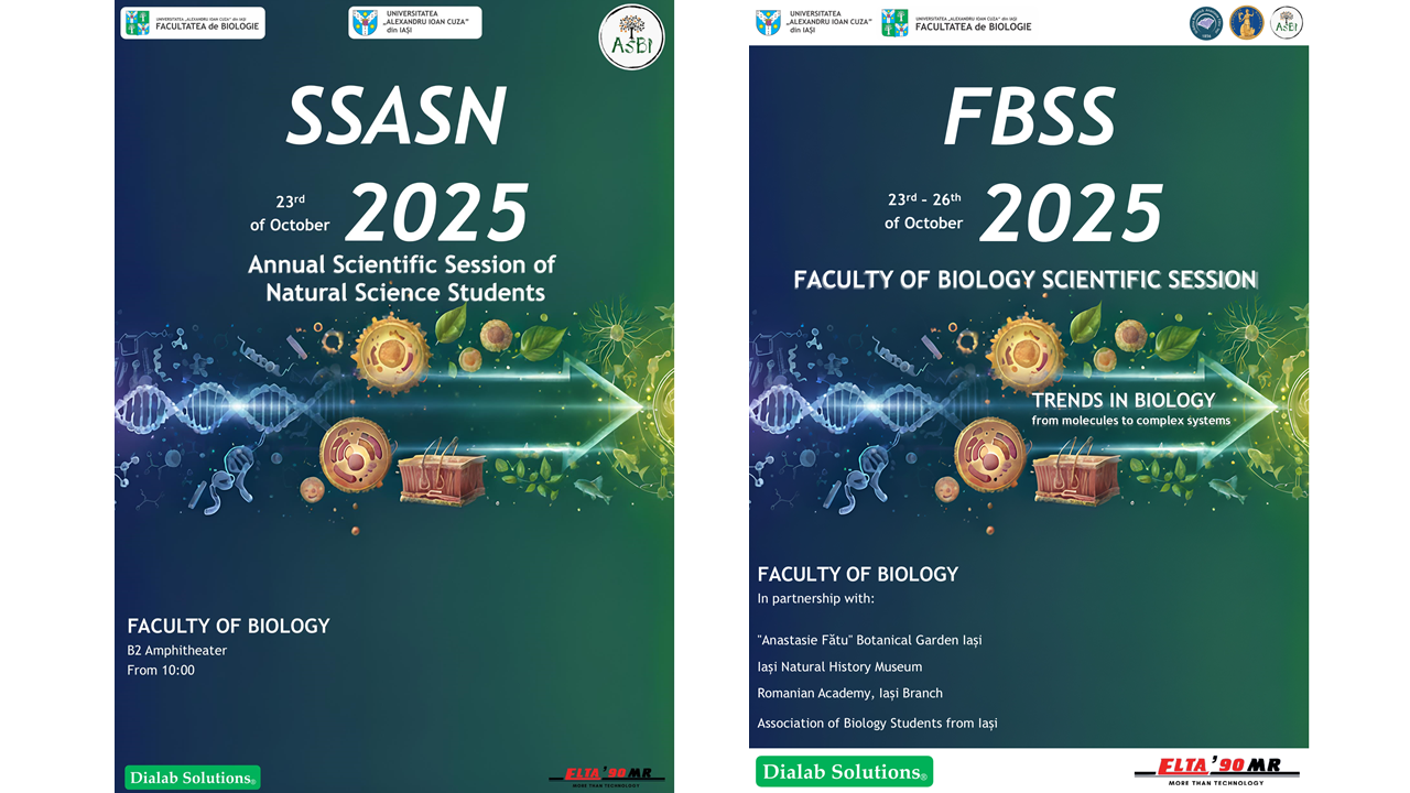 În cadrul evenimentelor dedicate Zilelor Universității „Alexandru Ioan Cuza” din Iași, Facultatea de Biologie a organizat două manifestări științifice devenite tradiție: Sesiunea Științifică Anuală a Studenților Naturaliști (SSASN 2025) și Sesiunea Științifică a Facultății de Biologie (SSFB 2025).