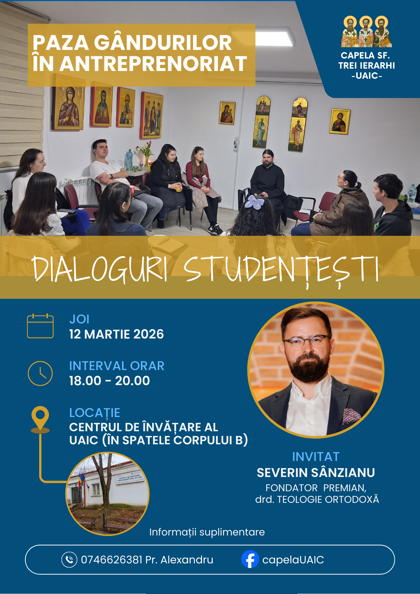 Capela ,,Sfinții Trei Ierarhi” – UAIC te invită joi, 12 martie, ora 18.00, la un nou dialog studențesc despre un subiect surprinzător și profund: