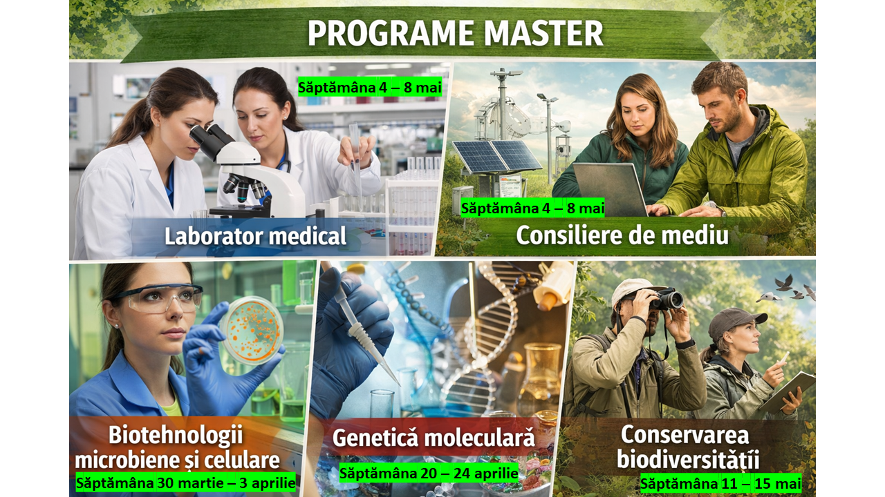 Drumul spre o profesie trece și prin etapa de alegere a unui master potrivit. Urmărește-ne pentru a afla detalii despre oferta de programe masterale a Facultății de Biologie.Vei avea posibilitatea să cunoști specialiști din domeniu, angajatori și absolvenți care au fost fix în locul tău și au reușit!