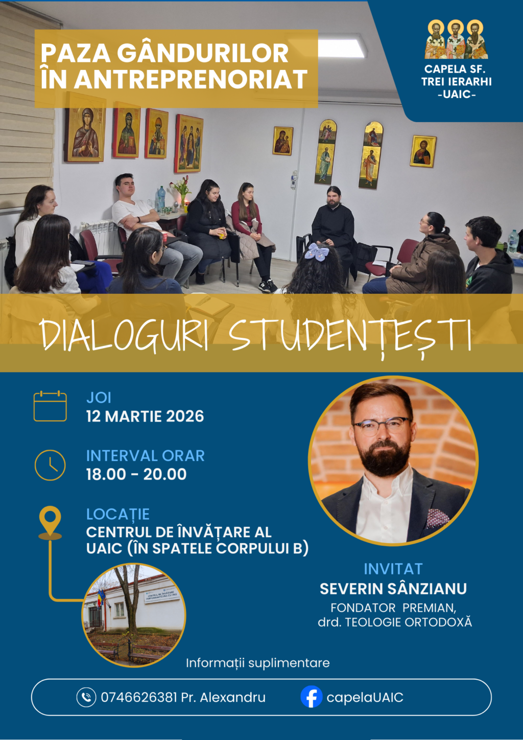 Capela ,,Sfinții Trei Ierarhi” – UAIC te invită joi, 12 martie, ora 18.00, la un nou dialog studențesc despre un subiect surprinzător și profund:„Paza gândurilor în antreprenoriat” 🎤 Invitat și moderator: Severin Sânzianu (absolvent[…]