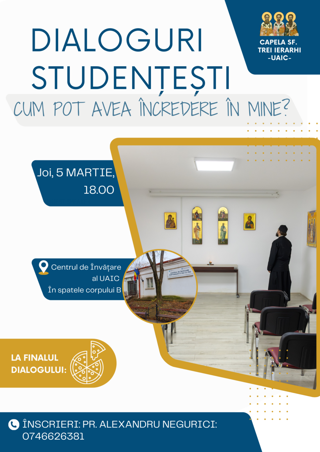 Capela ,,Sf. Trei Ierarhi” a UAIC invită studenții la un nou program dedicat lunii martie.